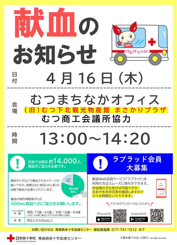 【4/16】献血のお知らせ