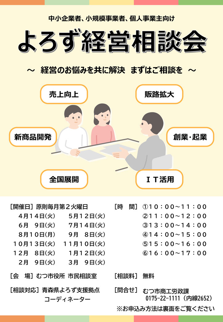 3. 中小企業者、小規模事業者、個人事業主向けよろず経営相談会開催について
